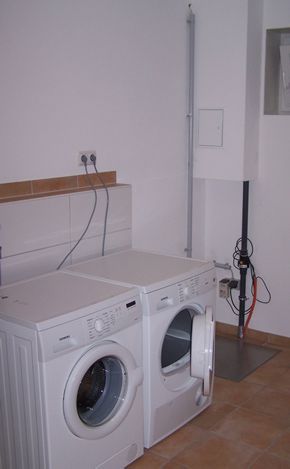 Jedes Ferienhaus hat im Keller nicht nur Sauna sondern auch eine Waschmaschine und Trockner zur kostenlosen Benützung.